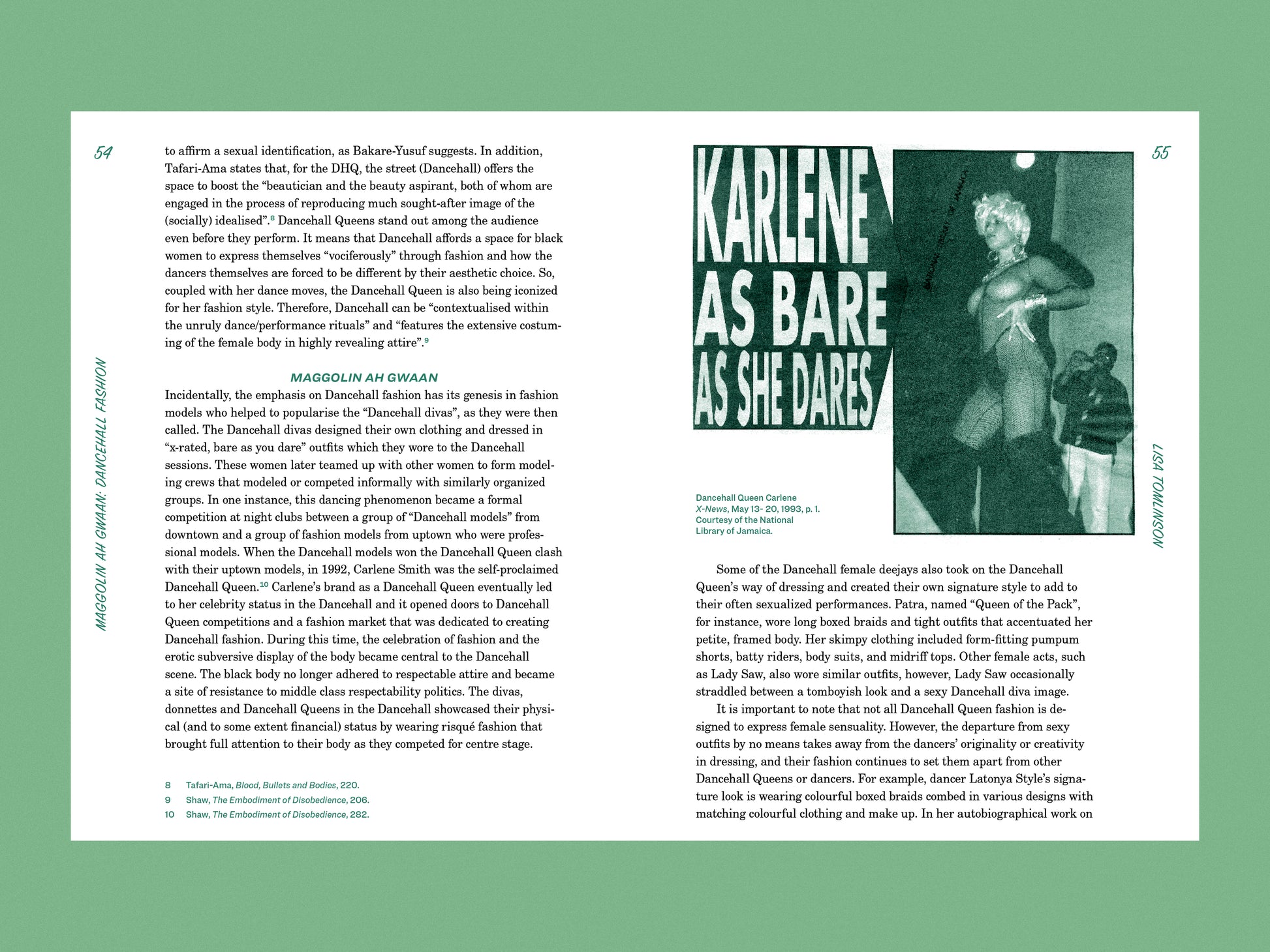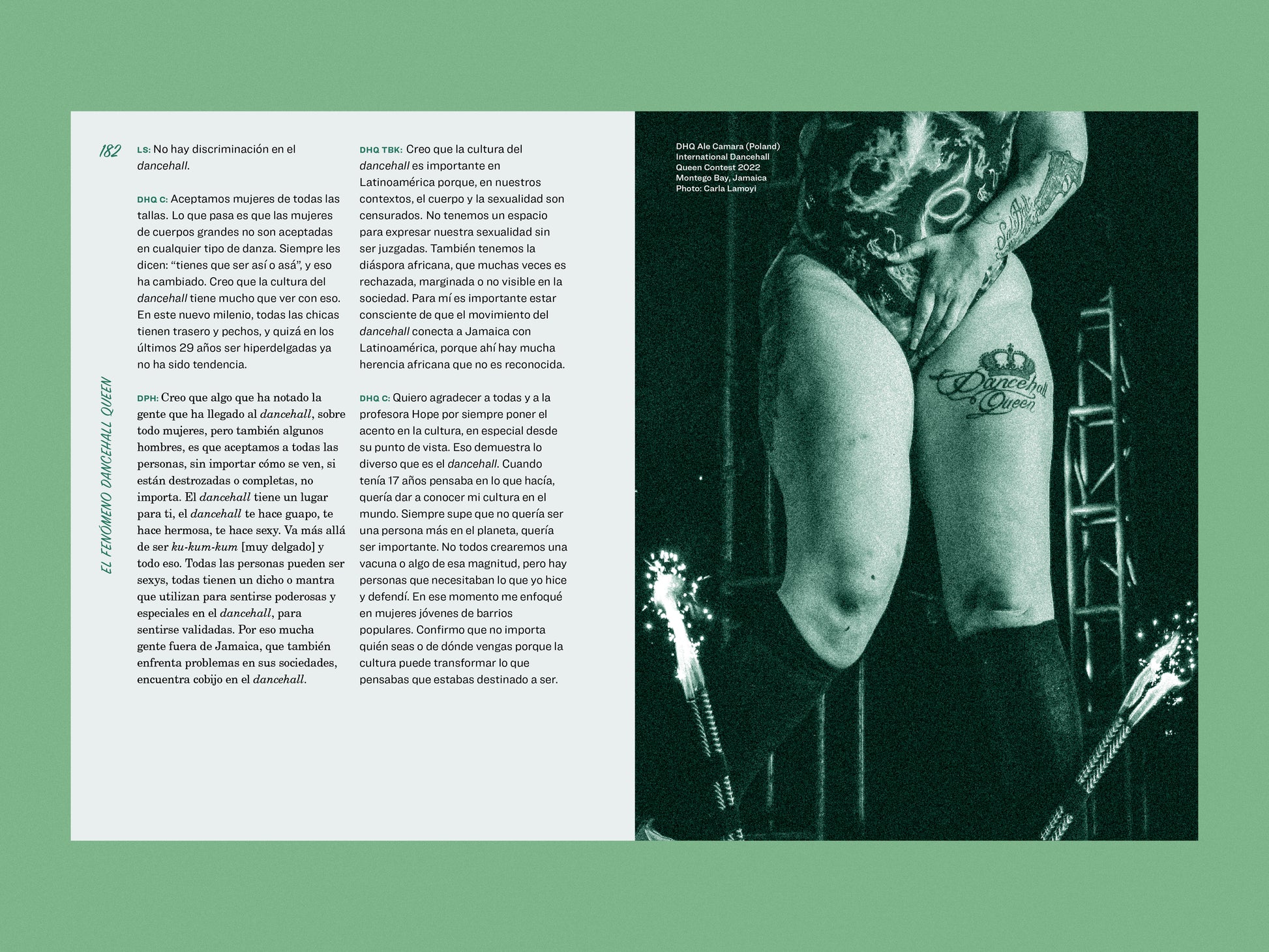 Dancehall Queen: Erotic Subversion / Subversión Erótica, es un libro bilingüe enfocado en el fenómeno Dancehall Queen, que surgió de un estilo de baile ejecutado sólo por mujeres. Este suceso retomó la moda, la actitud y las tendencias del dancehall. Creado en 1992, se transformó en una competencia en 1999 en el contexto de la escena musical y cultural del dancehall y el surgimiento de los soundsystems en los barrios populares de Kingston, Jamaica. Hoy se ha extendido por todo el planeta.